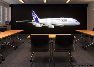 在汉堡飞机制造厂的组件装配厂房里,进行的是现有空中客车飞机(包括A319和A321)的机身和机舱内部组件的装配,并设有一个机舱内部装备的设计室。 在这个设计室里,空中客车选择Christie在虚拟现实和模拟仿真方面的专业合作伙伴Viscon为其提供技术支持。 Viscon为其引进了一个双频道的视频墙,以及一个采用4台Christie的Vivid White投影机的 7.2m x 2.7m的显示屏。
