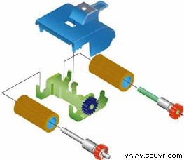 “进纸器配有橡胶滚筒,需要能够完成旋转、上下移动和侧移等运动,滚筒的移动将会影响文件的递送。我们一共有四套方案。通过使用FDM系统,我们把每个方案都制作出原型,并且进行初步测试,然后发给客户试用。”