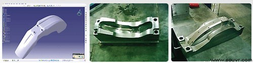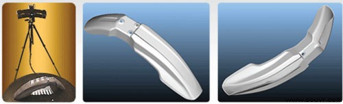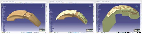 1.在挡泥板的正反两面安装5至6个参照标记物,用于数据自动对准,然后用Rexcan III分别扫描部件的正反面。