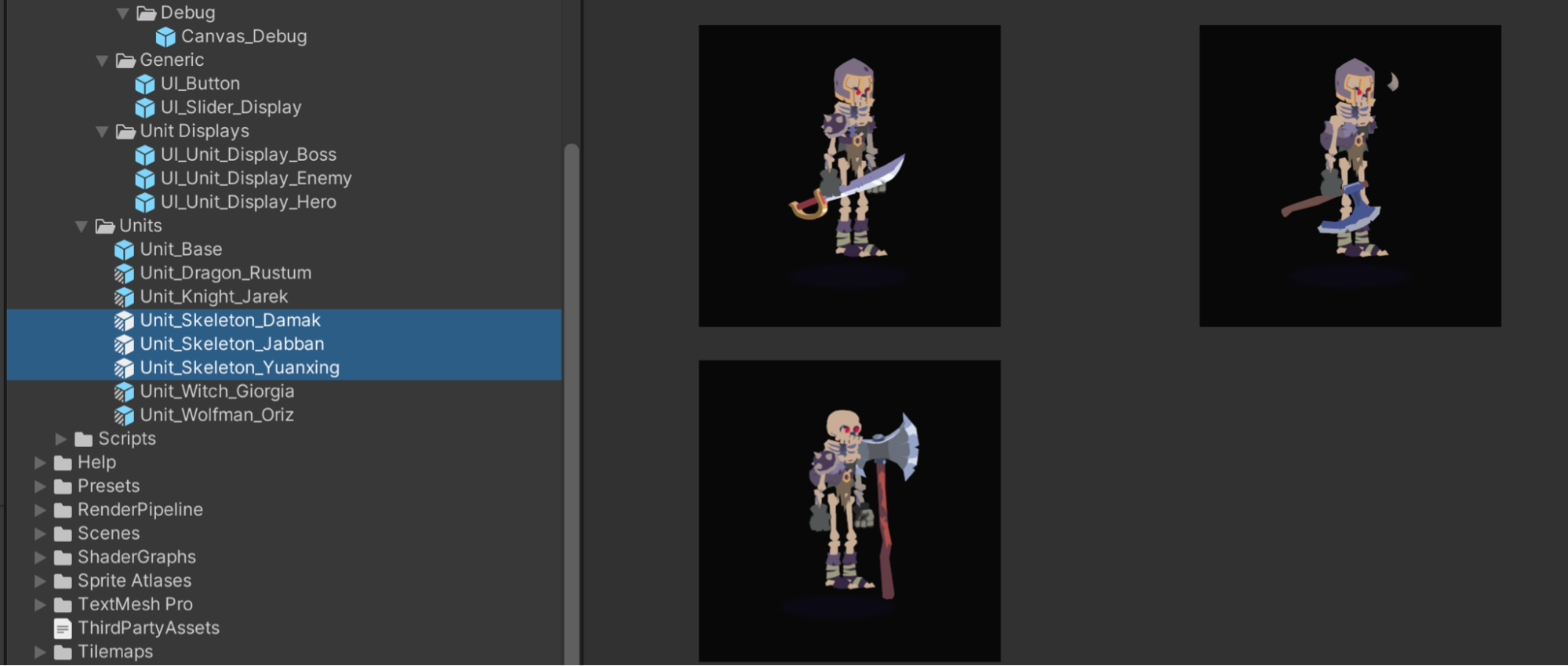 新的Unity 2D演示,Dragon Crashers,这些预制变种拥有不同的武器和能力。