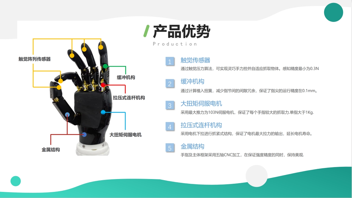 五指灵巧手:具有多个自由度和高灵活性,能够模拟人类手部的各种动作。灵巧手应具备强大的抓取能力和精细的操作能力,以适应不同的任务需求。