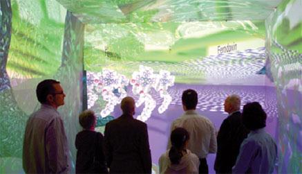 CAVE是一款房间大小的高级可视化设备,它结合了高分辨率、立体投影、和三维计算机图形,可营造出逼真的虚拟环境融入感。