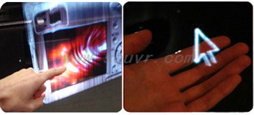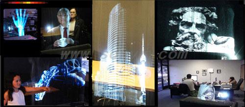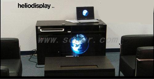 Heliodisplay工作时,最好将硬件设备隐藏于家具等设施中,这样观众只能看到投影图像,而看不到光源。例如,您可以在桌子或其它平面上削刻出一个凹槽用于放置光源设备,同时留一个孔洞用于投影。