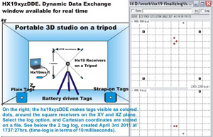 系统采用空气中的声波实现定位功能,误差大约为9毫米左右。空闲采样率为每秒16次。hx19的尺寸可以无限延长,小到几平米大到数千平米都可以覆盖。hx19系统完全采用无线设计,用CR/BR2032电池供电,唯独同步器需要通过USB连接到电脑,同步器的供电通过USB端口获得。