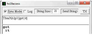接收器的字符串由hx19ms接收,通过USB端口传送。Hx19access将捕捉到数据流,并显示出来,如图所示。可以使用任何编程语言来控制数据,Hexamite公司提供了hx19access的源代码,便于用户使用。