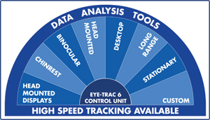 研究人员如今可以根据其具体应用来对各种眼部跟踪产品进行选择。桌面/远程安装的系统设计用于准确跟踪对应于一个平面的瞳孔直径和眼部位置。ASL桌面/远程解决方案更多地为报纸而非其他桌面/远程眼部跟踪系统所参考。