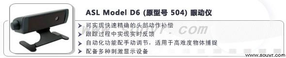 D6机型是ASL公司的Eye-trac系列产品。该系列产品具有多款眼部跟踪装置,能够满足客户现在及未来的研究需求。