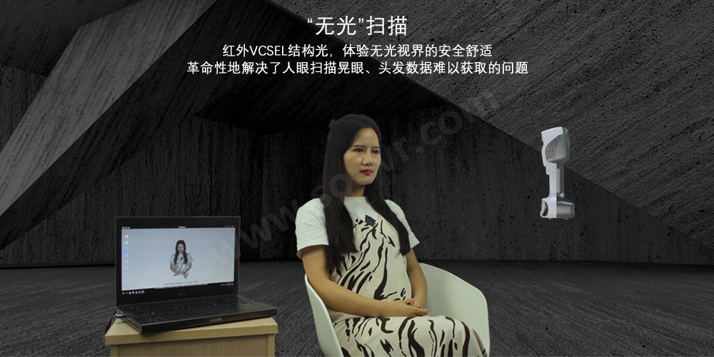 “无光”扫描:红外VCSEL结构光,体验无光视界的安全舒适,革命性地解决了人眼扫描晃眼、头发数据难以获取的问题;