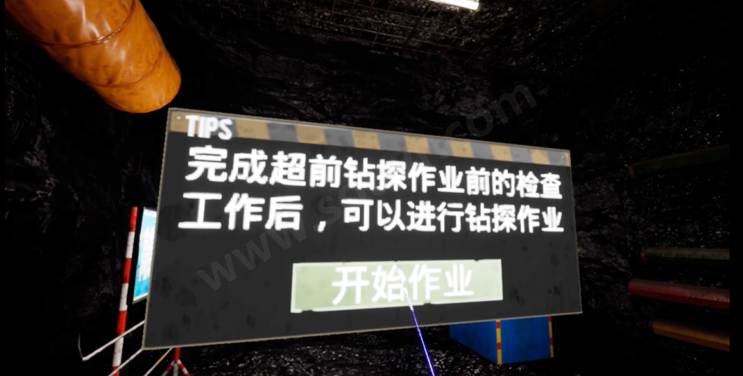 系统采用UnrealEngine引擎进行开发,借助PBR材质,对井下作业环境进行逼真的虚拟现实呈现,采用粒子系统模拟作业过程中的喷水、粉尘等物效。